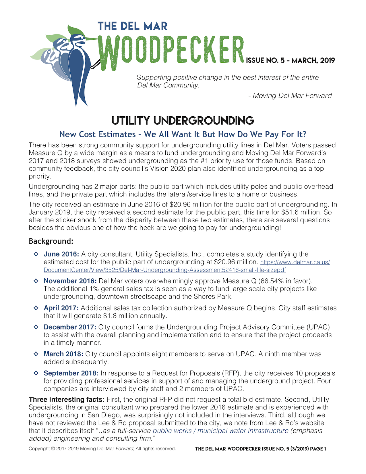 The Woodpecker’s goal is simple – present the facts so citizens are better informed regarding what our City Council is doing and how its actions impact you.”